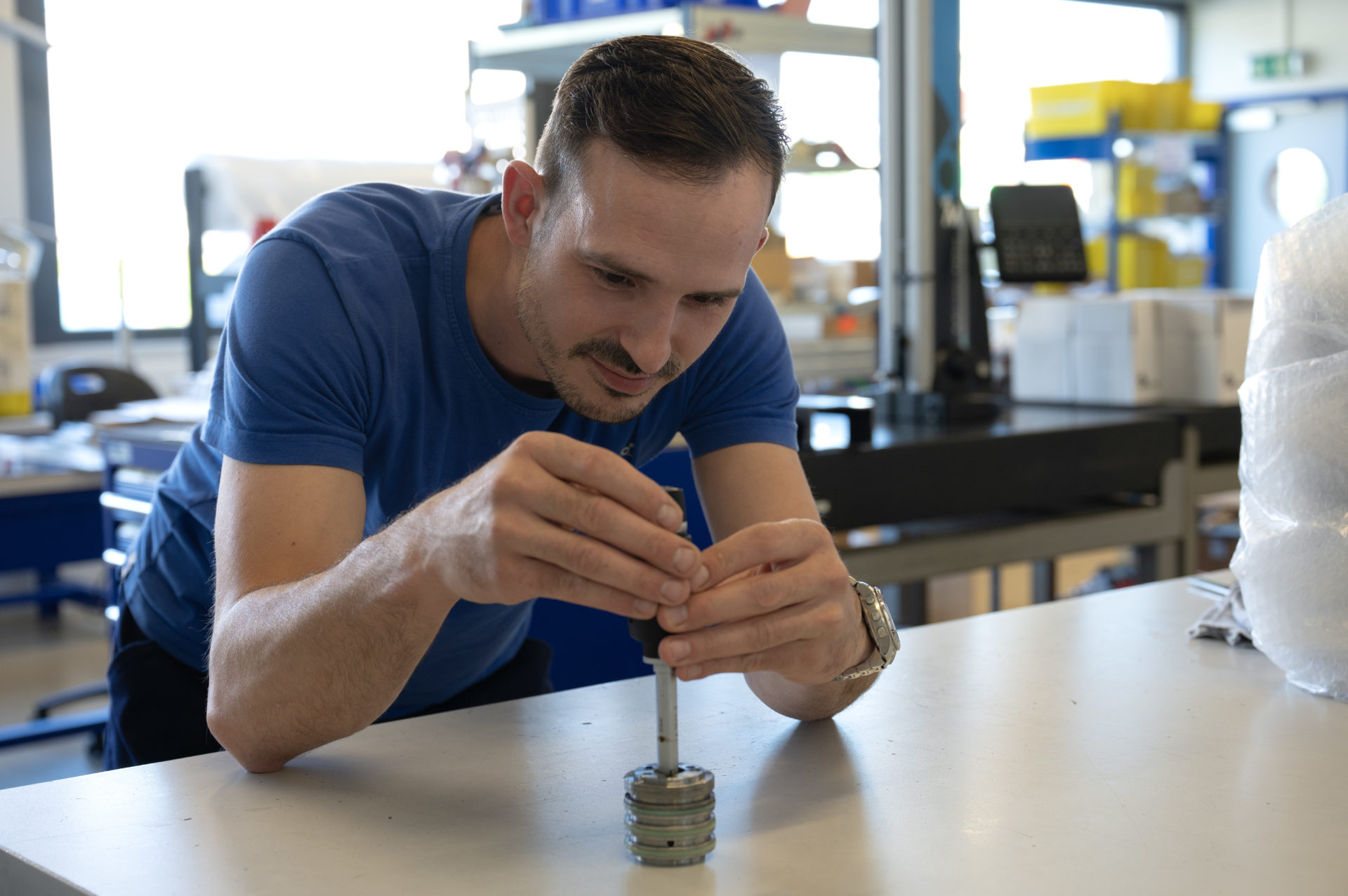 A qualidade está no coração do DNA da Rollomatic. O departamento dedicado incorpora essa exigência validando novos componentes e fornecedores, realizando regularmente inspeções de entrada das nossas peças e mantendo um elevado padrão de excelência na qualidade dos nossos produtos. Com um alto domínio de equipamentos de medição e controle, esta equipa garante a excelência em cada etapa.